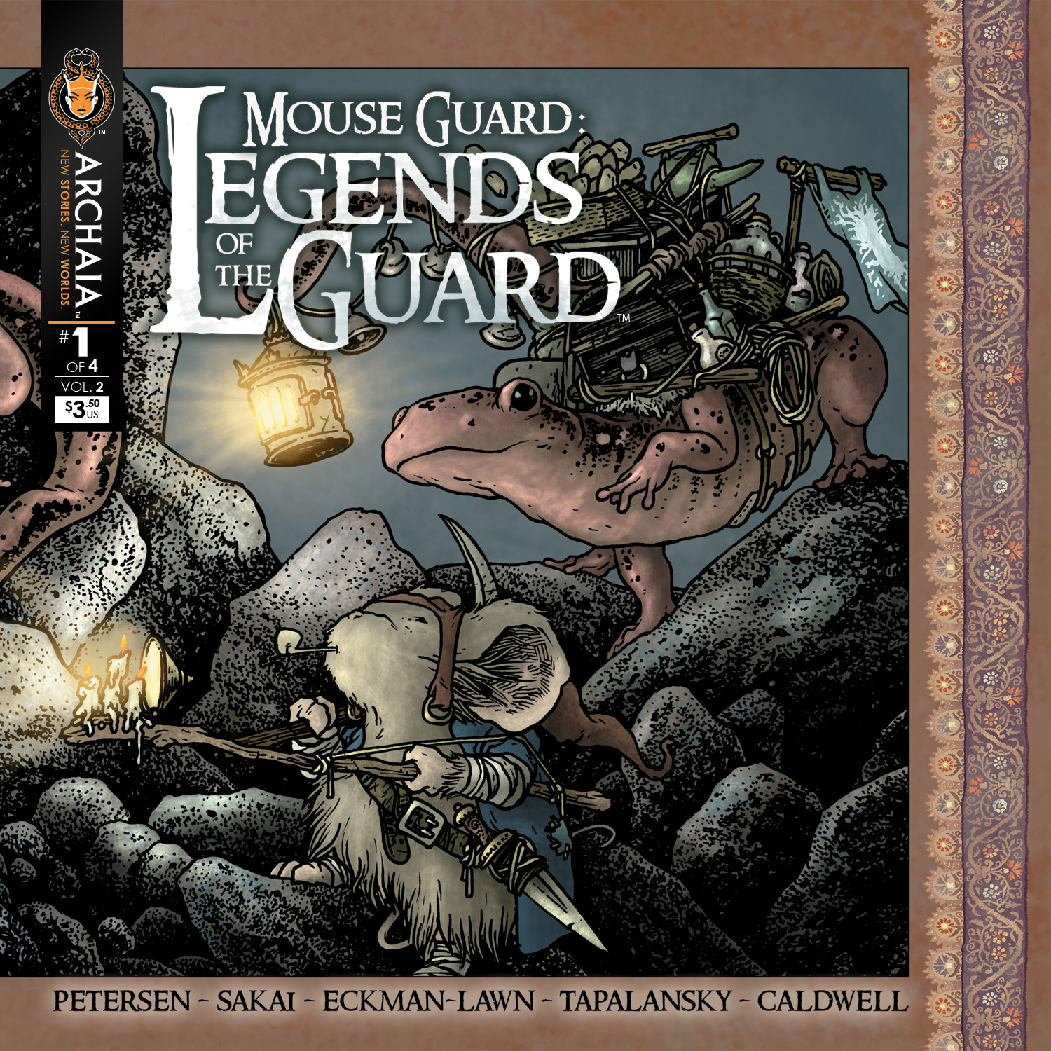 Los Angeles, CA (March 20, 2013) – New legends will be forged! Award-winning publisher Archaia Entertainment is excited to announce the launch of Volume 2 of the Eisner Award-winning anthology miniseries Mouse Guard: Legends of the Guard. The first of four issues is set to debut in May 2013. Mouse Guard is the best-selling fantasy comic book series created by Michigan-based David Petersen about a group of elite warrior mice who serve to protect and guide the common mice under their care.