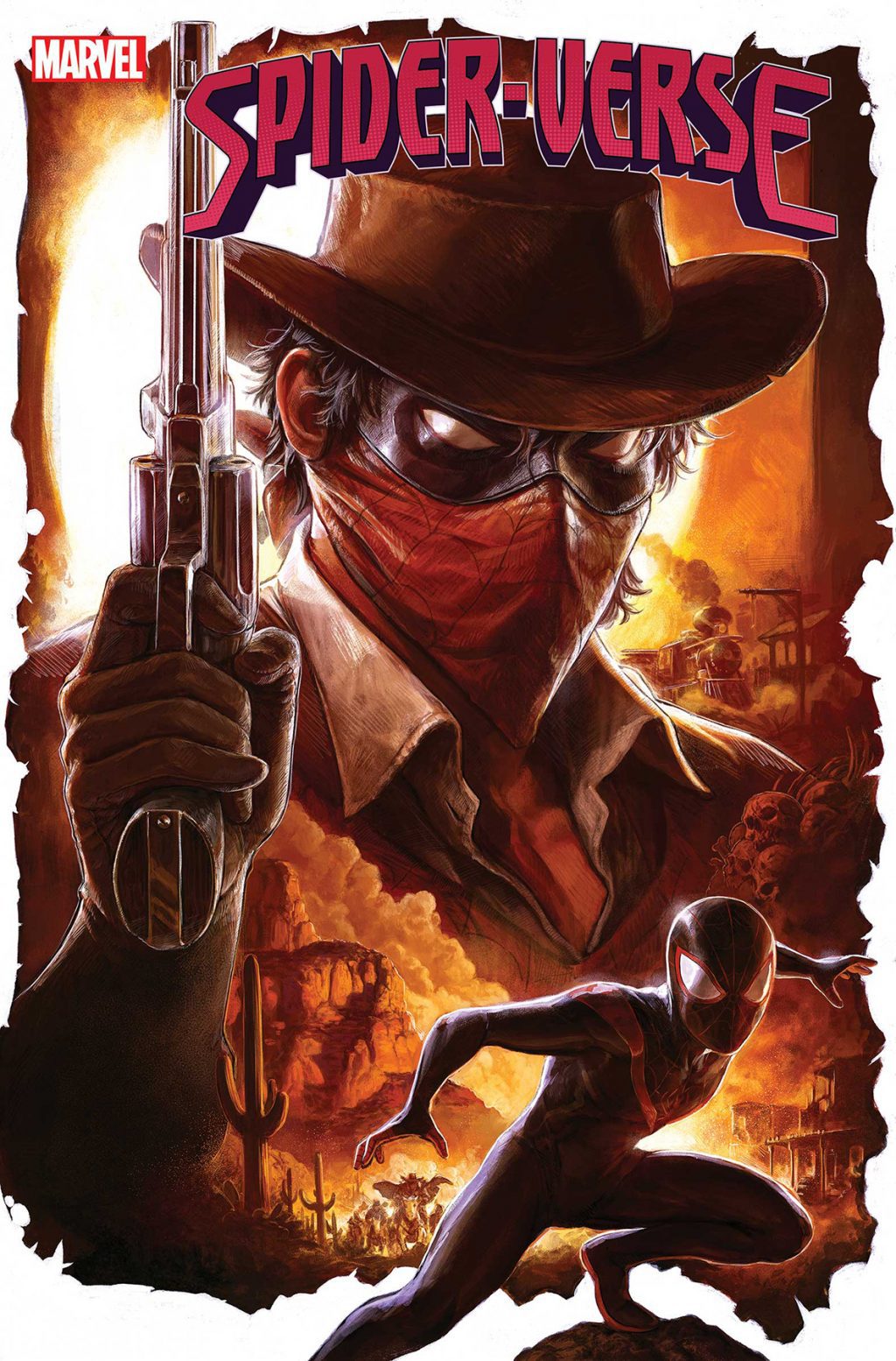 Miles Morales’ explosive tour through the multiverse continues in SPIDER-VERSE #4! Each issue of this unforgettable adventure introduces new takes on Spider-Man for readers to fall in love with, and this time, it’s high noon as Taran Killam (star of ABC’s Single Parents, formerly of Saturday Night Live) takes readers to the wild, wild west! Making his Marvel Comics debut alongside artist Juan Gedeon (VENOM) and colorist Brian Reber (BLACK CAT), Killam spins a web of adventure that teams Miles up with the mysterious cowboy, Webslinger!