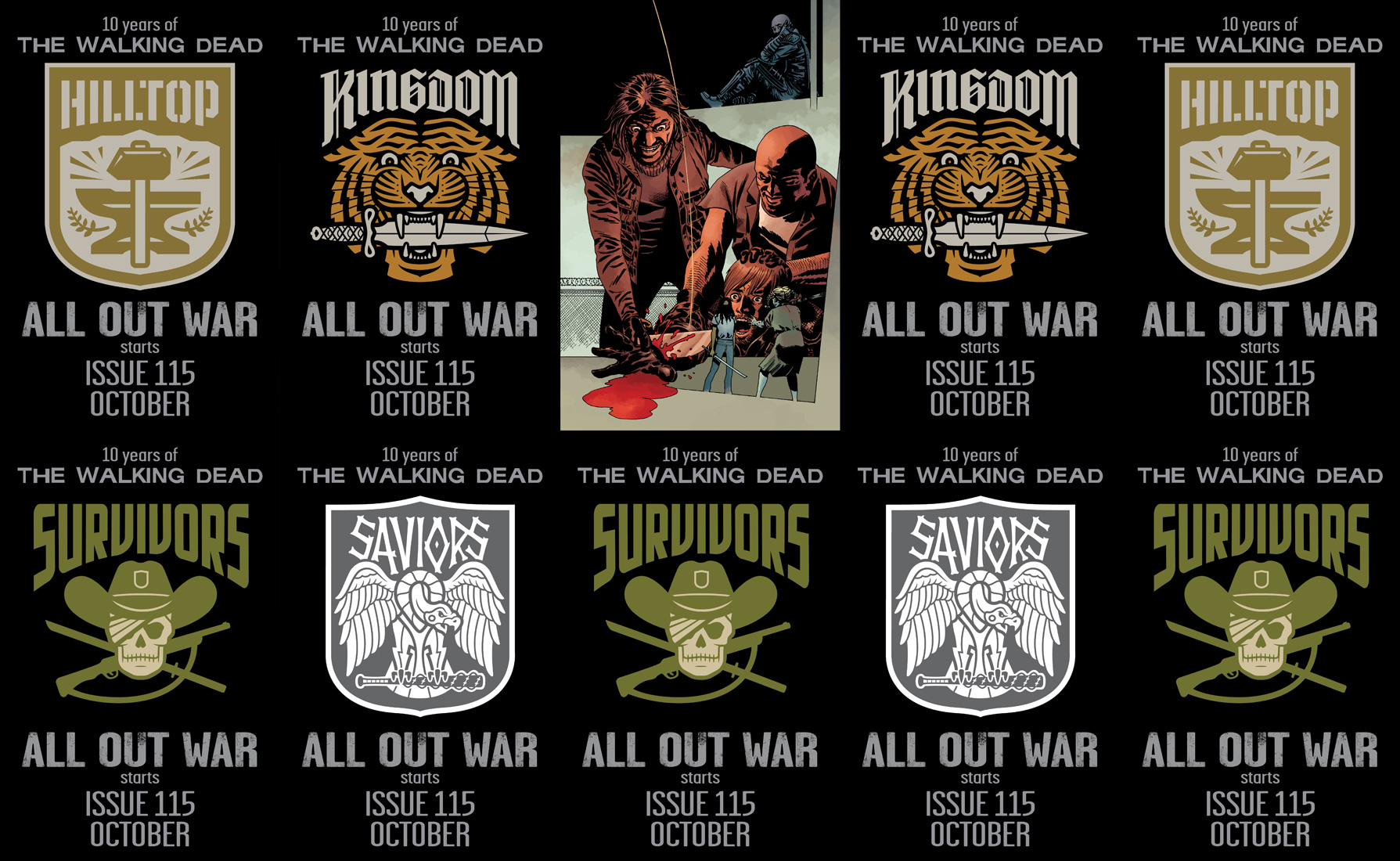 This October is the 10th anniversary of THE WALKING DEAD, and we’re excited to announce that issue #115 will have 10 connecting covers in celebration. The covers, when viewed together, form an image that highlights significant moments from the past 10 years of the series. Each of the 10 individual covers will also depict a special moment from a year of THE WALKING DEAD’s illustrious history. These covers are drawn by series artist Charlie Adlard, with colors by Dave Stewart.
