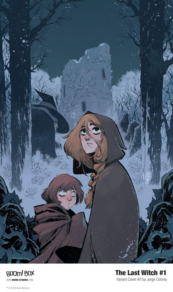 Print copies of THE LAST WITCH #1 will be available for sale on January 6, 2021 exclusively at local comic book shops (use comicshoplocator.com to find the nearest one) or at the BOOM! Studios webstore. Digital copies can be purchased from content providers, including comiXology, iBooks, Google Play, and Madefire.