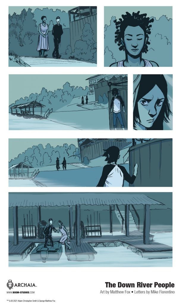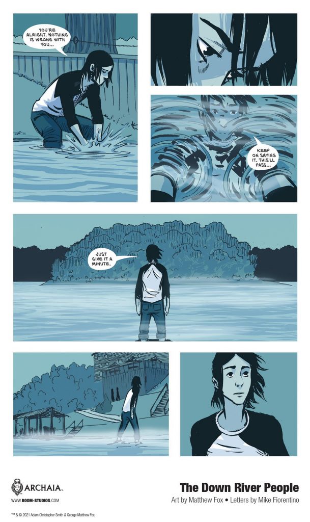 Print copies of THE DOWN RIVER PEOPLE will be available for sale on May 26, 2021 at local comic book shops (use comicshoplocator.com to find the nearest one) and on June 1, 2021 at bookstores or at the BOOM! Studios webstore. Digital copies can be purchased from content providers, including comiXology, iBooks, Google Play, and Kindle.