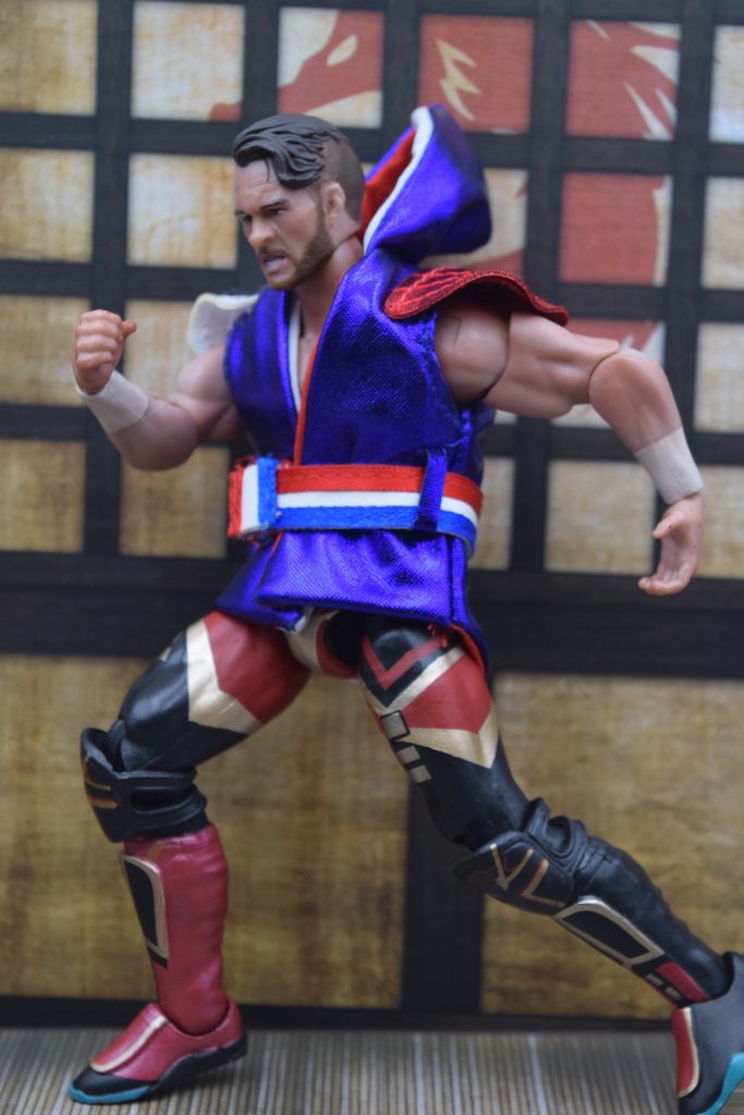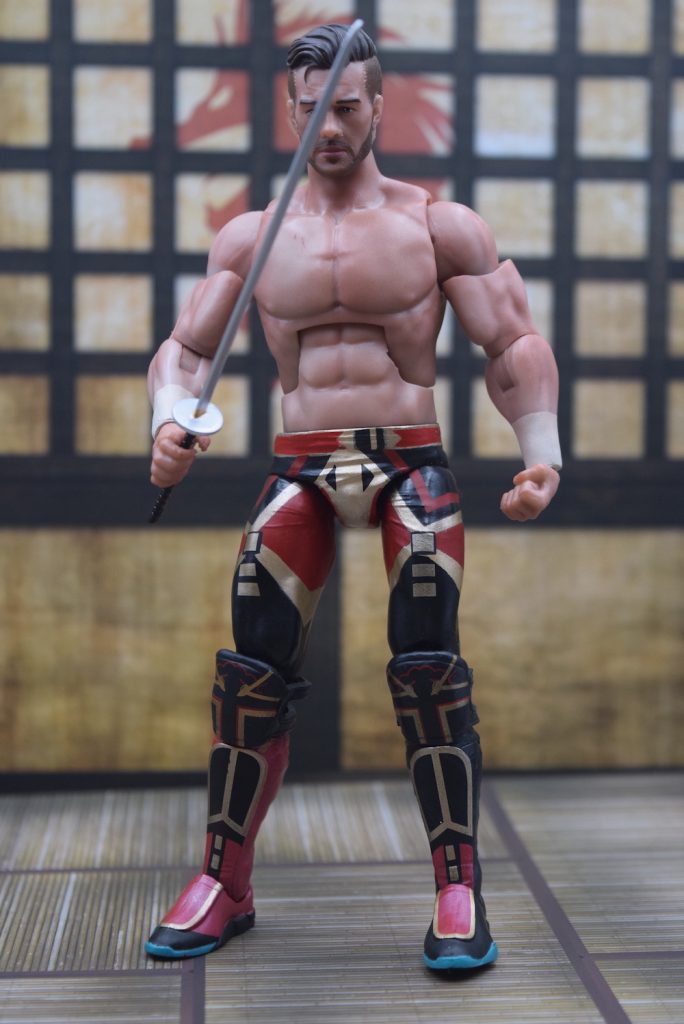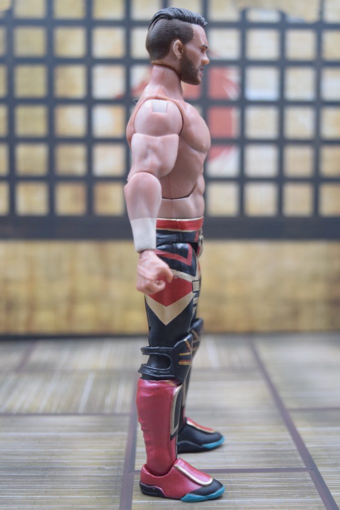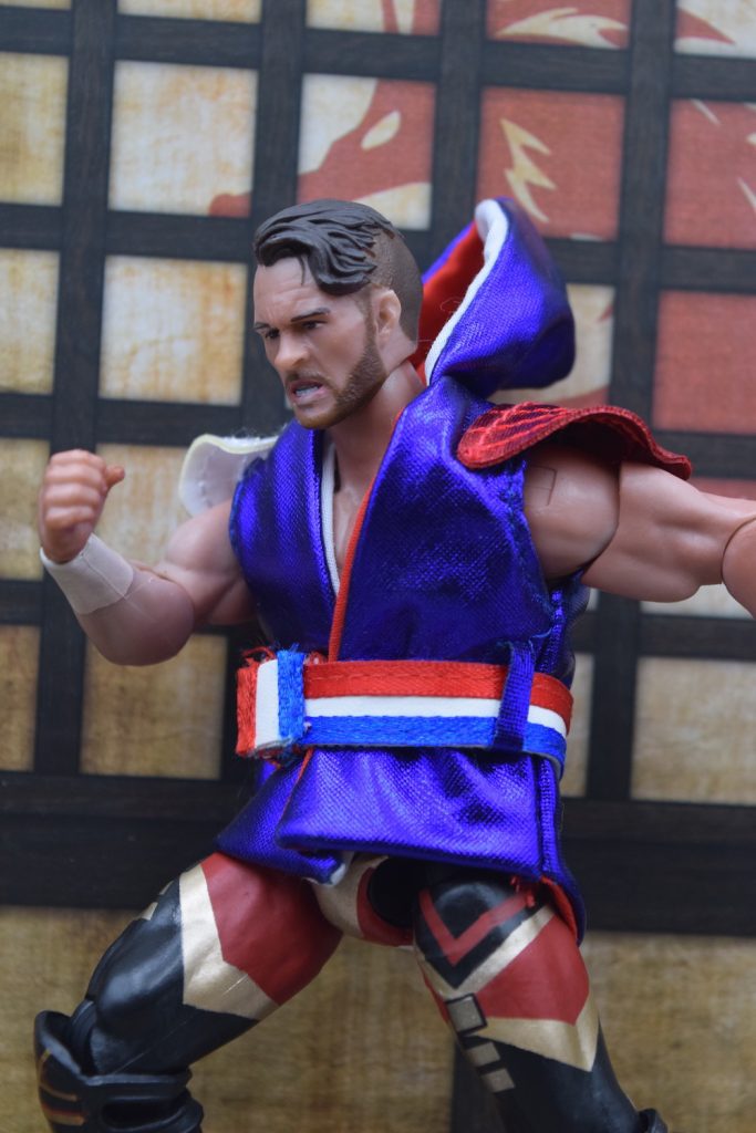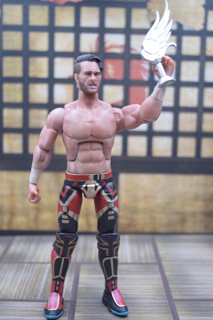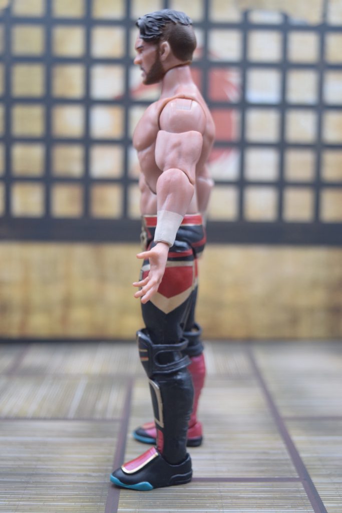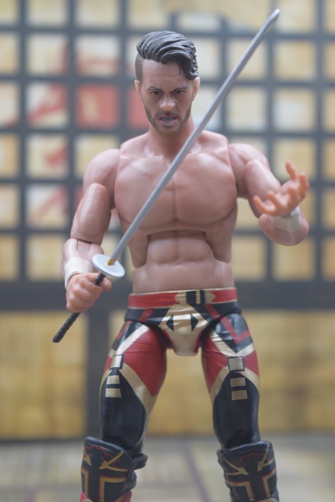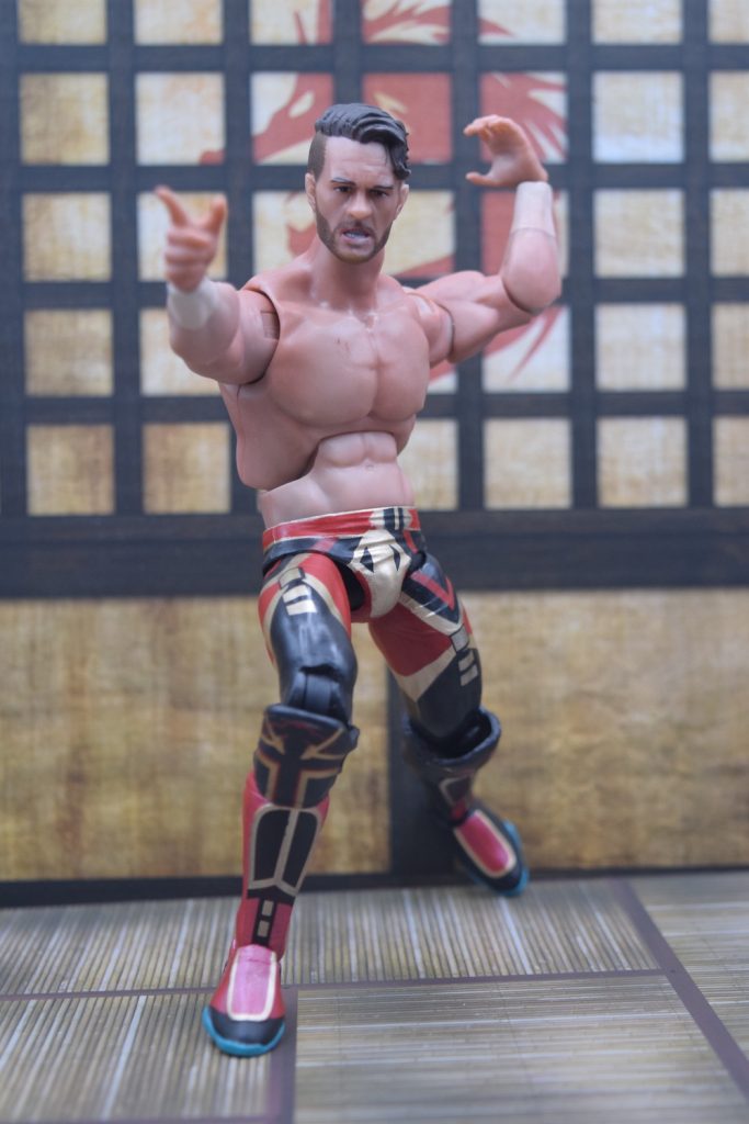 Ospreay has a great range of motion articulation-wise, with a turnable waist and ab crunch for mimicking his high flying arsenal. The leg motion is a bit hindered, stopping the figure from delivering some hard-hitting kicks to the head. The hands pop on and off with ease, as does the head. Paint apps are pretty solid for the most part, as is the sculpt.