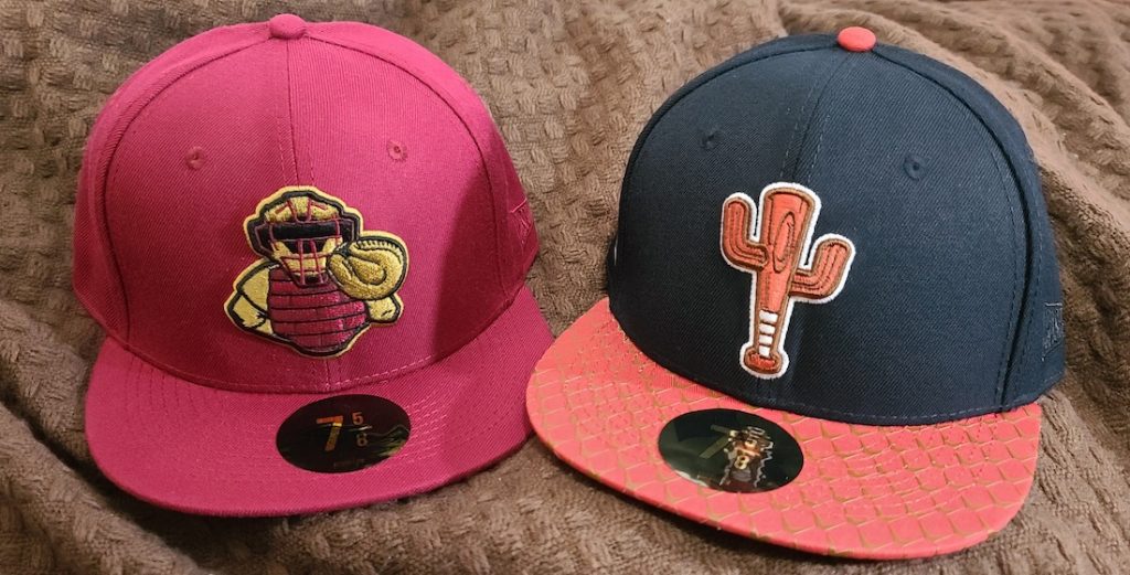 I ordered a few items to qualify for their Spring Training hat giveaway, the striking Cactus Club Desert Sunrise cap. So, in addition to the giveaway hat, I also picked up Brick Wall, a brick red hat with an imposing catcher ready to stop any ball that makes it past the plate. First up, let’s talk about the Brick Wall. Fantastic cap, with a pennant Baseballism flag on the side and the Baseballism flag man logo on the back, plus a brick pattern under visor. The fit on this hat was just as good, if not better, than a New Era Cap. I am absolutely blown away by this hat. It looks, feels, and fits fantastic.