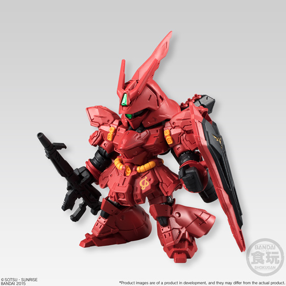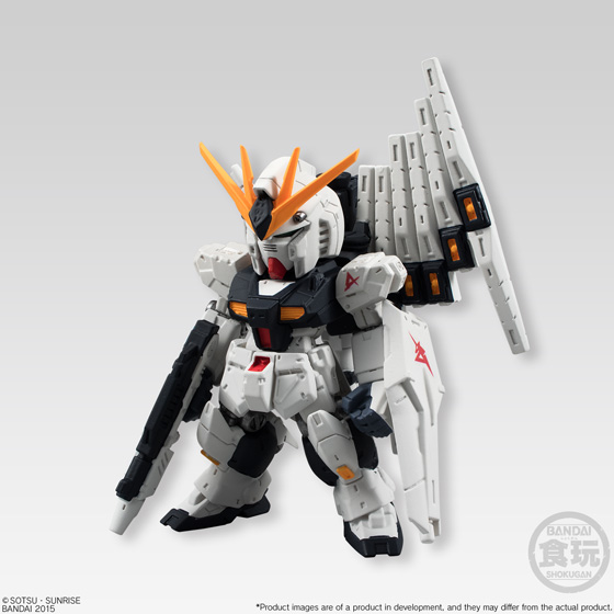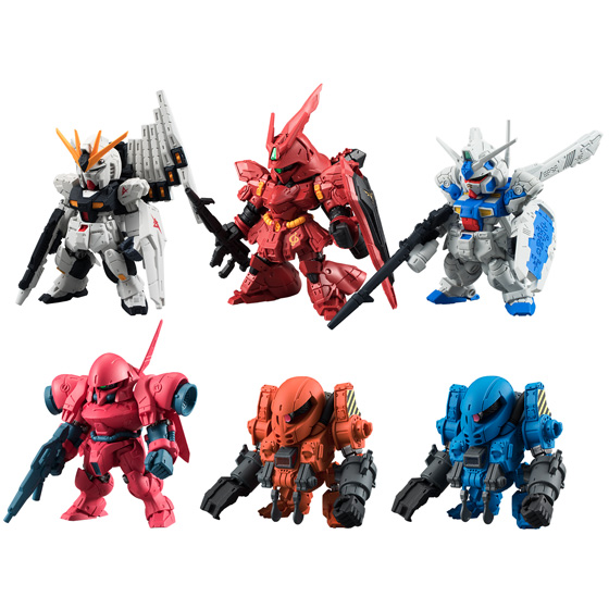 Bandai Candy Toy is proud to introduce a new “FW Gundam Converge” series. In this series, large-sized mobile suits join the lineup, and some include more than one weapon! The figures are approx. 2.2 inches tall with a uniquely deformed look while retaining stylish proportion. The first installment features ‘Nu-Gundam (with a rifle & a bazooka)’, ‘Sazabi,’ ‘Gundam Gp04,’ ‘Gerbera Tetra,’ and ‘Mobile Worker Late Type’ in two red and blue colors!