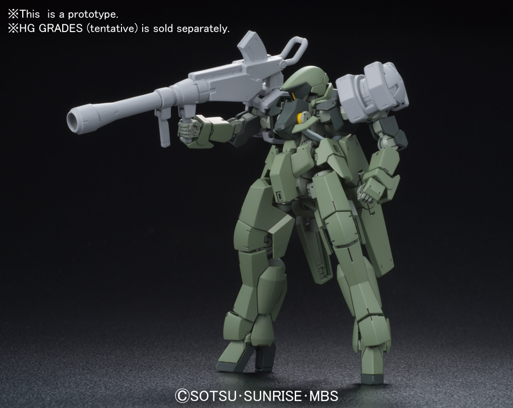 Part of the series Gundam Iron-Blooded Orphans, the Graze Kai is an upgraded Graze mass production unit used by the Earth organization Gjallarhorn. Comes equipped with a rifle and battle axe that can be stored on attachment points on its body.