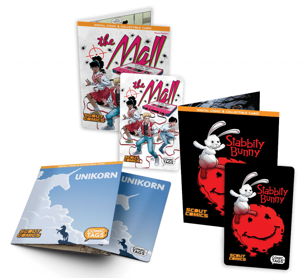 COMIC TAGS first wave of releases will be some of the most popular SCOUT COMICS series to date. Eight (8) titles in total featuring THE MALL, WHITE ASH, MINDBENDER, STABBITY BUNNY, IT EATS WHAT FEEDS IT, GUTT GHOST, SOLAR FLARE & THE SOURCE are available now, with more titles — and more PUBLISHERS coming on board in the future.