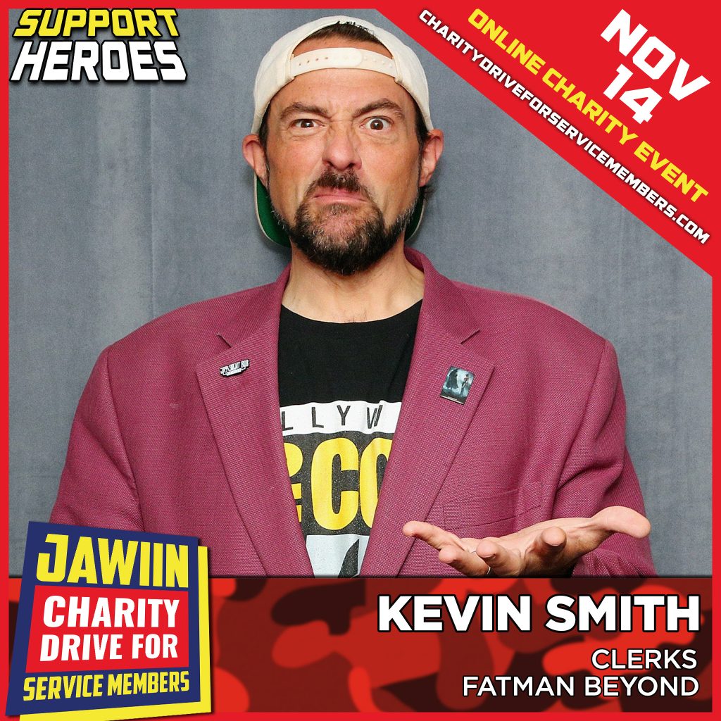 With the help of drive organizer Ashley Victoria Robinson and engineer Christian Ruvalcaba, each hour of the Jawiin Charity Drive for Service Members will include a Comic Convention style panel with celebrity guests. One of the very first guests to join this special charity event is is famed Hollywood Director and Podcaster, Kevin Smith!