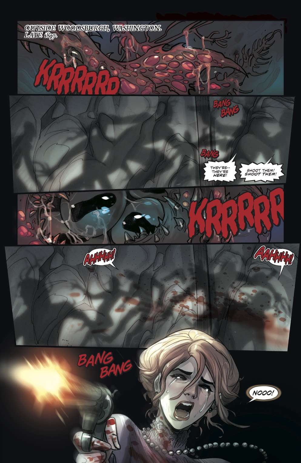 Mirka Andolfo’s Mercy begins when the placid mining village of Woodsburgh is disturbed by a series of brutal murders, sending the settlement into turmoil. As the first snow covers the chaos in a white blanket, a mysterious woman in black arrives, eliciting a totally different kind of unrest. But who is Lady Hellaine, really? And what’s her secret agenda?