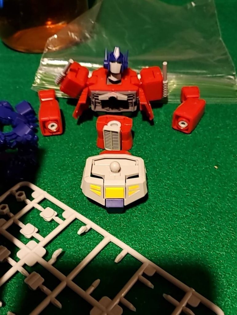 Everything was very clean for this model- it is an excellent model and only took two hours to build, which is very nice. I could easily see an 11-12 year old building this with no problems. The possibility for poses is massive, as this Optimus Prime is so articulated. To see the difference from Drift to the G1 Optimus Prime is so amazing- I look forward to what Bluefin/Flame Toys have in store next!