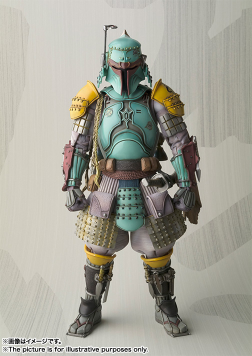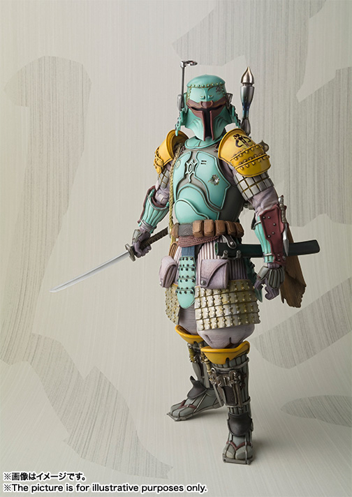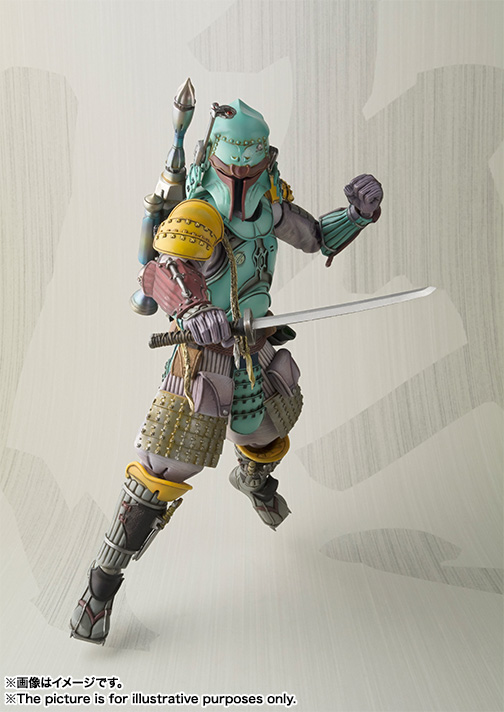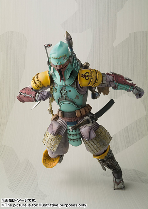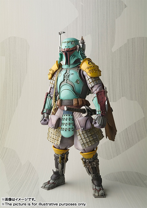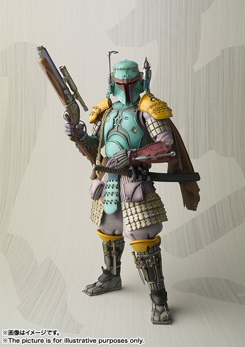 Set to release in November 2015, the Rounin Boba Fett is complete with gun, sword, knives, jet pack, everything a bounty hunter would need in, say, the Meiji Era.