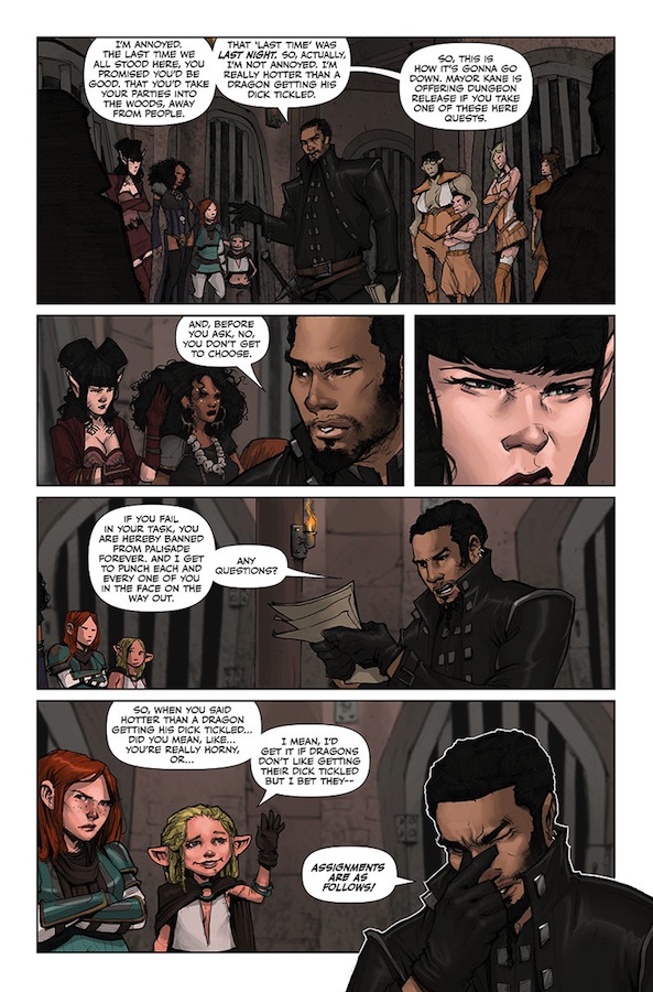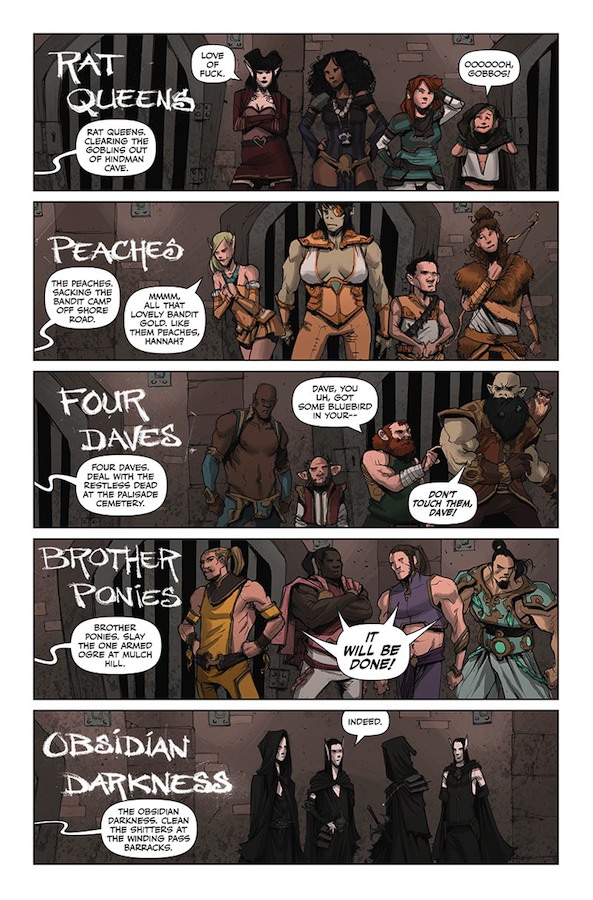 “I suppose it’s obvious at this point that this is a love letter to my years of Dungeons and Dragons and fantasy but tweaked ever so slightly with a modern twist,” said writer Wiebe, who collaborated with Meg Dejmal to round out his characters in an interview with IGN. “Rat Queens is a title I’m super excited about. This is a series I’ve wanted to write for years but never felt quite ready to do it.”