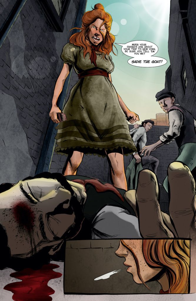 “The streets of NYC were chaotic and filthy back then, with faces from all over the world cramped into a few city blocks, all living together trying to capture a piece of that american pie,” said Ryan Curtis. “Our book follows some of these street level criminals as they try to build their empires. From Sadie the Goat who becomes the Last Female pirate of New York to the roguish safecracker Dutch Herman, and his daring escape from Sing-Sing prison—it’s fun pulling from real events and incorporating them into our story. Although there are some things that remain historically accurate, we take license with many things, to create a wild and rockling adventure through the Empire City.”