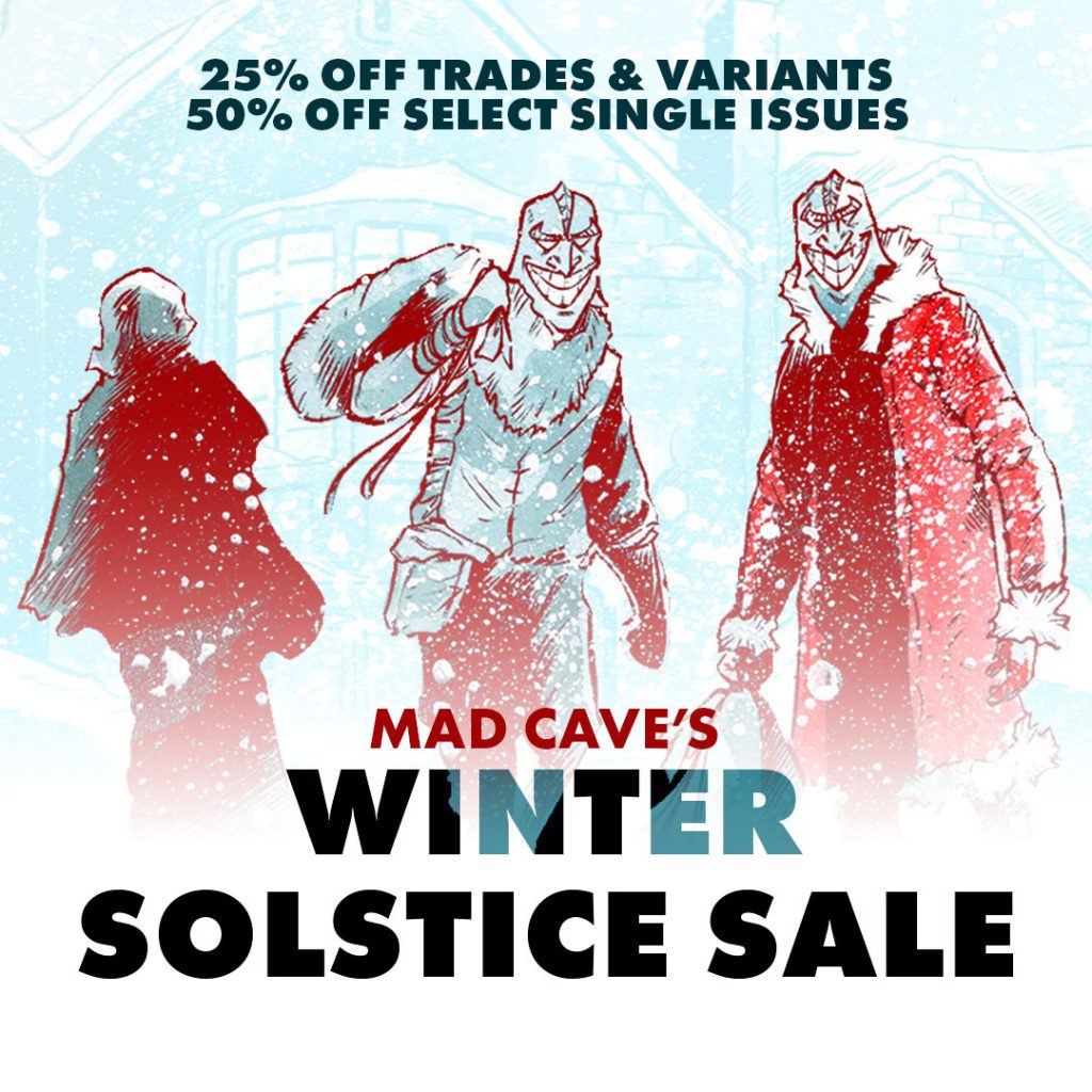 From fantasy, horror, scifi, adventure, and more; there’s plenty to discover in the Mad Cave catalog! Dec. 20 – Jan. 3, receive 25% off all Mad Cave Trades and Mad Cave variants, as well as 50% off select single issues. Stock up for the solstice and descend into madness!