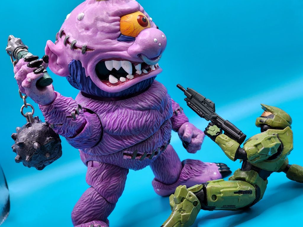 This figure might surprise some, given its impressive high standard of quality from a new company. This figure can look great in the 1/12 scale display, 1/18 scale, or just on its own. The paint apps are meticulous, and it shows- a fantastic paint job. From the figure itself to the detailed accessories, the paint applications here make the piece shine even more. I am incredibly impressed with Premium DNA Toys’ first outing with Madballs. Horn Head rises to the top of unique action figures in my collection.