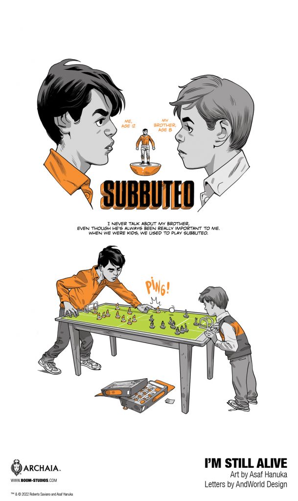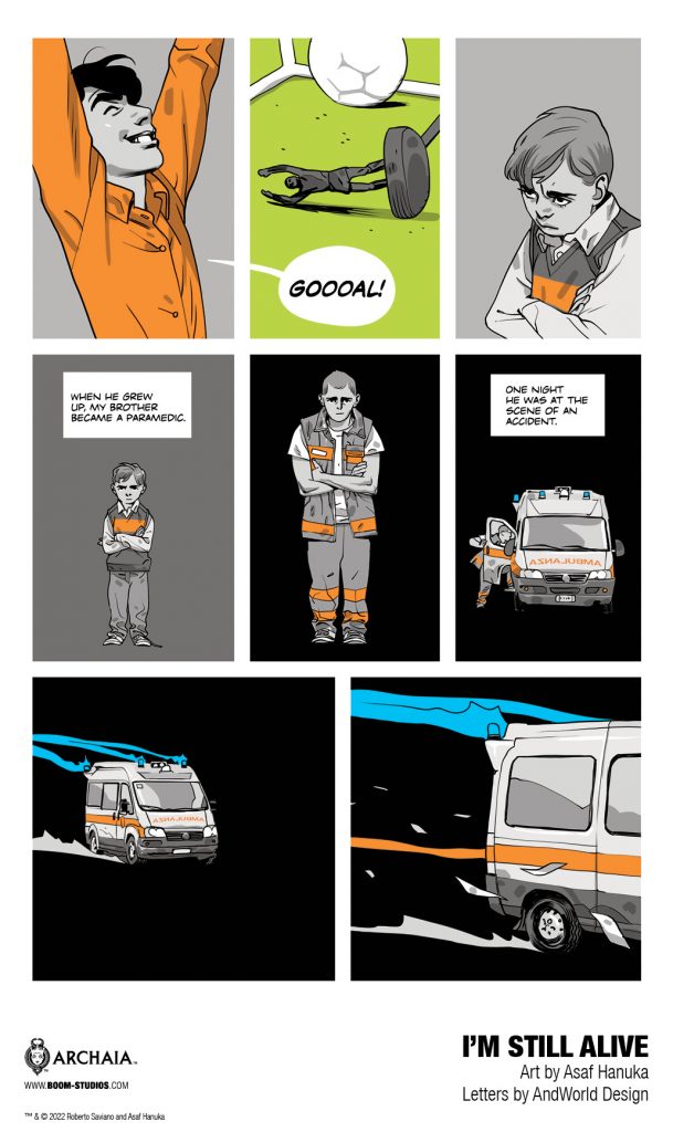 Print copies of I’M STILL ALIVE will be available for sale on October 5, 2022 at local comic book shops (use comicshoplocator.com to find the nearest one), October 11, 2022 at bookstores everywhere or at the BOOM! Studios webstore. Digital copies can be purchased from content providers, including comiXology, iBooks, Google Play, and Kindle.