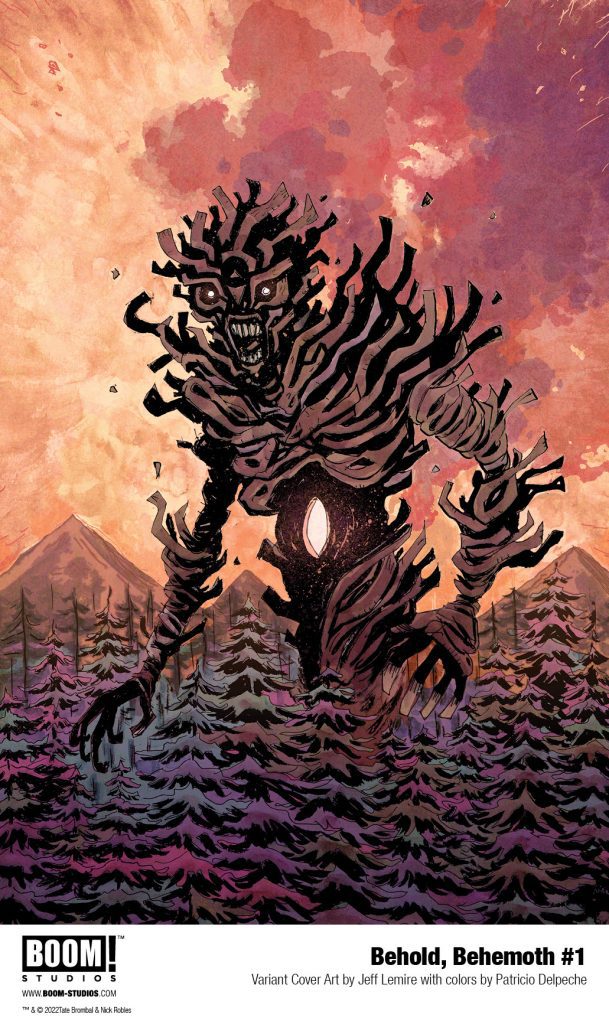 BEHOLD, BEHEMOTH #1 features main cover art by series artist Robles, and variant covers by acclaimed comics creator Jeff Lemire (Black Hammer, Sweet Tooth) with colors by Patricio Delpeche, artist Andrea Sorrentino (Gideon Falls) with colors by Dave Stewart, and more.