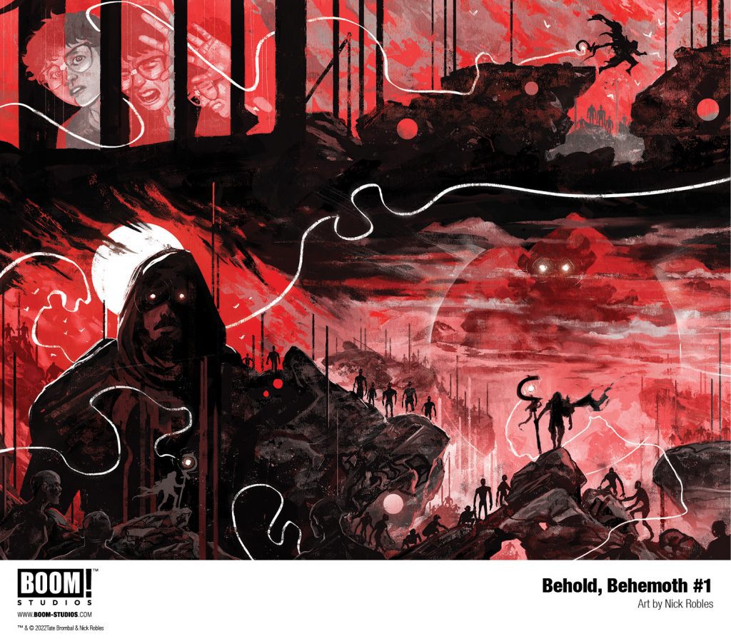 “Tate and Nick have created an epic that defies definition, full of psychological horror, apocalyptic destruction, and haunting personal discovery in equal measure,” said Eric Harburn, Executive Editor, BOOM! Studios. “If you’re looking for the book that will launch comics’ next two superstars…BEHOLD,BEHEMOTH.”