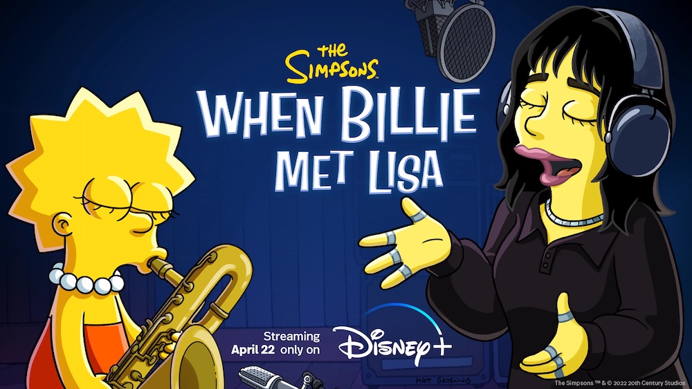 Billie Eilish revealed on social media that she will appear alongside “The Simpsons” family in the upcoming short titled “When Billie Met Lisa.” The all-new short, featuring OSCAR® and GRAMMY® Award-winning artists Billie Eilish and FINNEAS, will premiere Friday, April 22, exclusively on Disney+.