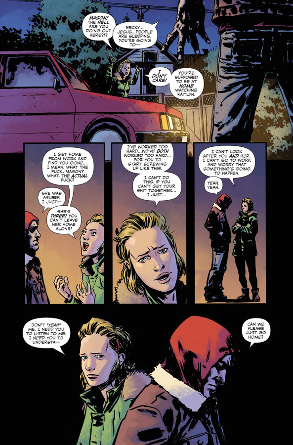 In THE VIOLENT #1, readers meet Mason, an ex-con and former drug addict who’s trying hard to give up his old life. He’s got more important things to live for now: a wife struggling to contain her own addiction and a young daughter who needs them both. When threatened with losing his daughter, Mason falls into old habits, stumbling through a string of desperate criminal acts whose repercussions quickly become deadly serious.