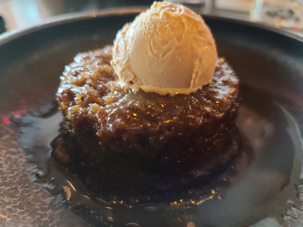 Wait, let’s not forget dessert! Sticky toffee pudding with speculoos ice cream. The ice cream had a cinnamon, almost peanut butter-like flavor, and was terrific. The sticky toffee pudding is moist, bursting with flavors that balance so well with the ice cream. Another bite of heaven before our dinner was over.