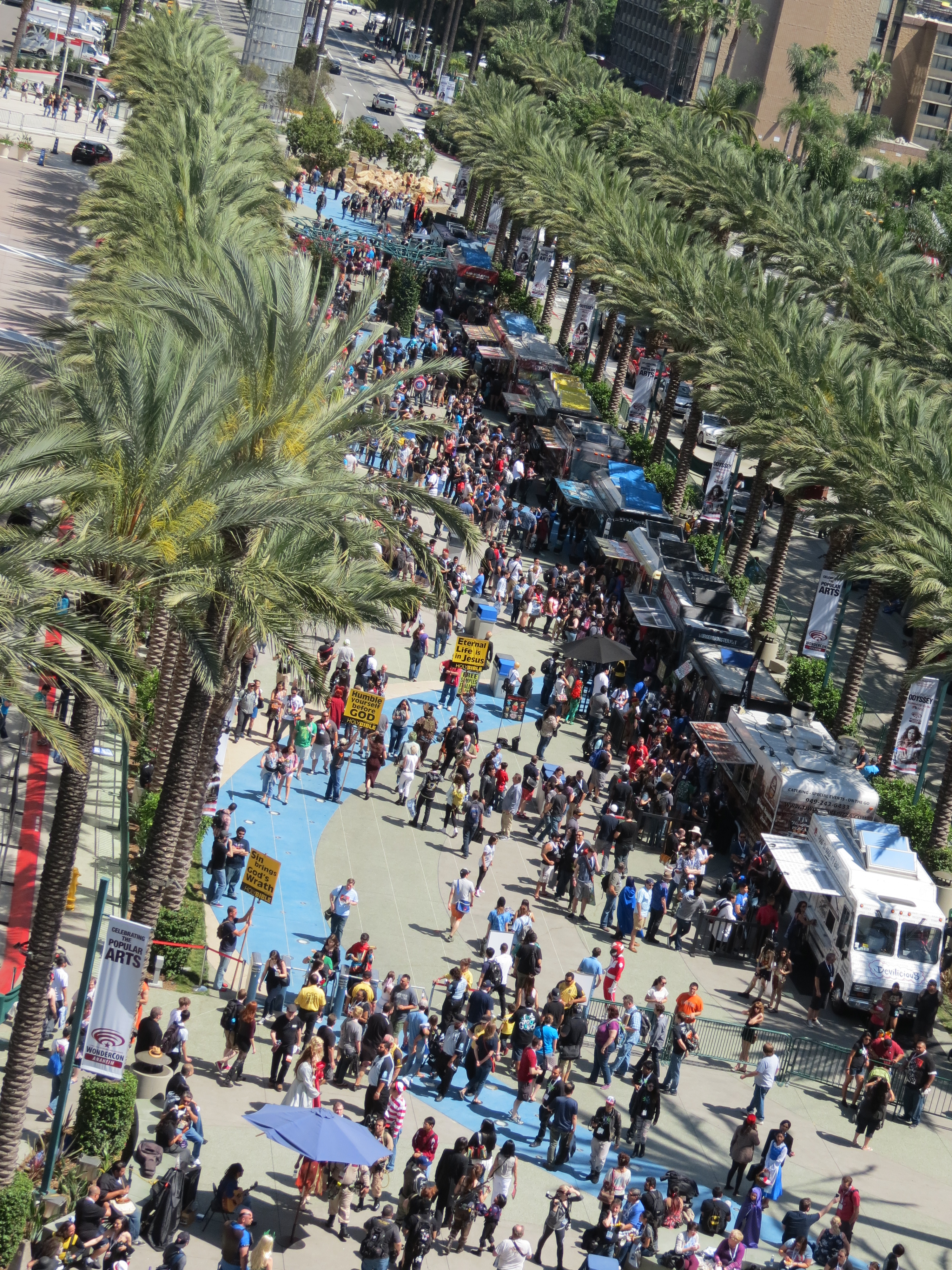 The fun didn’t stop inside the convention center, as food trucks lined the street outside, giving attendees a unique dining experience. The grounds outside were covered with cosplayers and fans looking to catch some of those famous California sunrays. You couldn’t look outside without seeing troves of people at every turn, many of them dressed to the nines in the scorching heat.